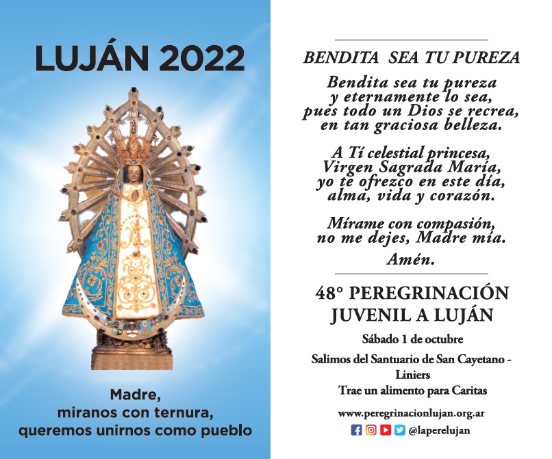 Este es el lema que acompañará a los Peregrinos en la 48° Peregrinación Juvenil a Luján que comenzará el sábado 1 de octubre desde el Santuario de San Cayetano en Liniers.