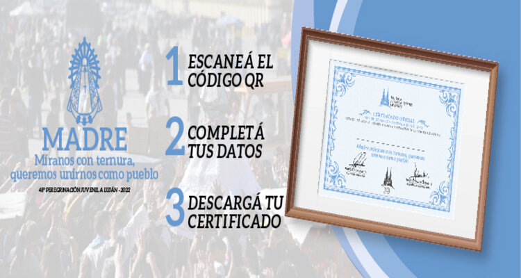 Desde el Santuario Basílica Nuestra Señora de Luján, en conjunto con las Santerías Oficiales del Santuario, se propuso llevar a cabo el certificado gratuito “Madre, míranos con ternura, queremos unirnos como pueblo”. Está acción refuerza el propósito de ser obsequiado al final del peregrinar reconociendo el camino de cada peregrino que con su gran amor entregaron su esfuerzo y sus oraciones a la Madre.