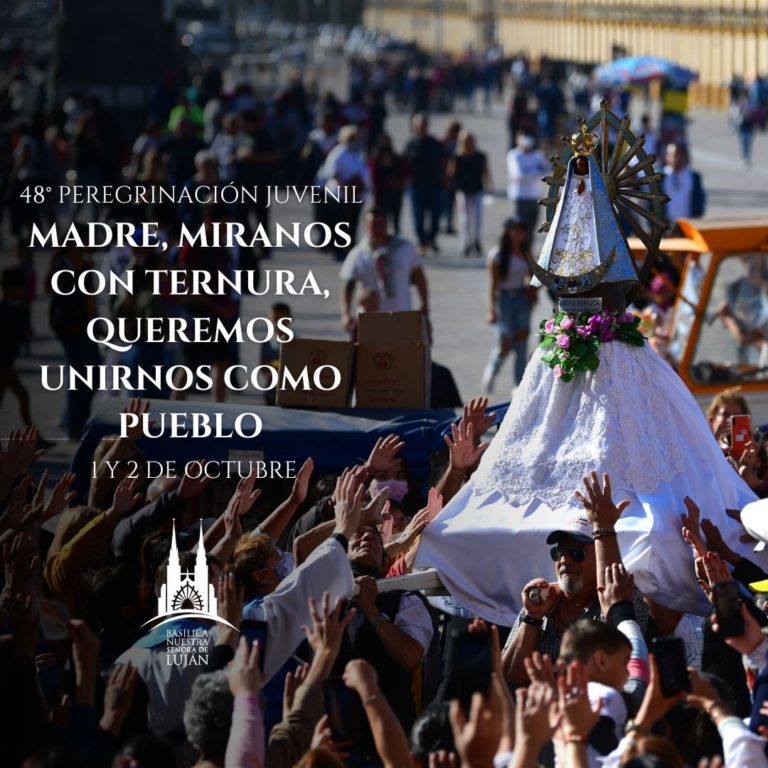 El sábado 1 y el domingo 2 de octubre todos los fieles de la Virgen de Luján viviremos, en comunión y oración, una peregrinación histórica acompañando el lema “Madre, míranos con ternura, queremos unirnos como pueblo”.