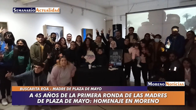 La actividad se desarrolló en la Casa de la Cultura de la municipalidad de Moreno, donde se descubrió una placa recordatoria de la primera ronda de las Madres el 30 de abril de 1977. La homenajeada fue Buscarita Roa, Madre de Plaza de Mayo. Intervienen Charly Levián, coordinador del Programa Aerosoles de la Dirección de Juventudes de la municipalidad de Moreno y Silvina Cansino, directora de Derechos Humanos de la comuna