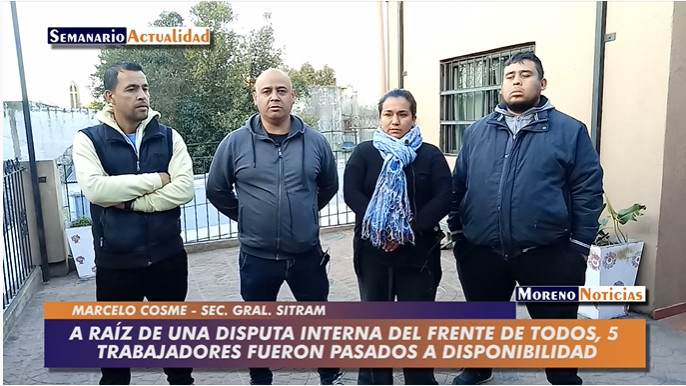 SociedadA raíz de una disputa interna del Frente de Todos, 5 trabajadores fueron pasados a disponibilidad Posted on 31 agosto, 202231 agosto, 2022 by rodrigos 31 Ago Alberto Fernández y Mariel Fernández visitaron la expoindustria Moreno 2022 El Movimiento «25 de Mayo Revolución» denunció persecución laboral en el municipio de Moreno