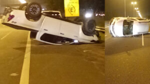 Choque y vuelco de camionetas sobre la Autopista del Oeste
