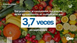 Informe CAME: Del productor al consumidor, los precios de los agroalimentos se multiplicaron por 3,7 veces en septiembre