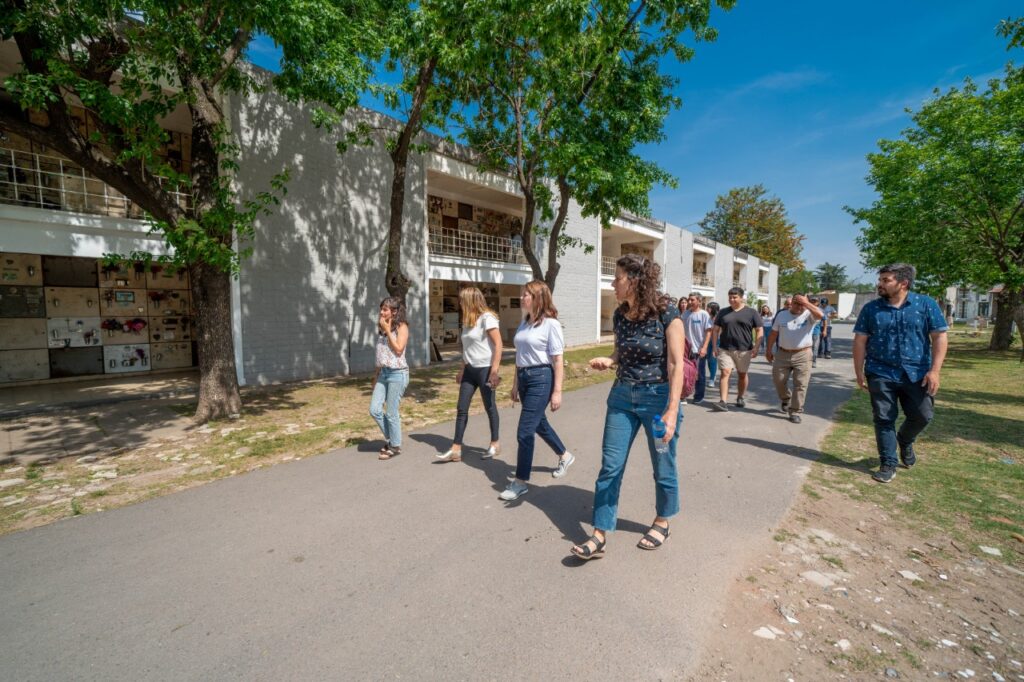 La intendenta, Mariel Fernández, recorrió las obras junto a las y los trabajadores del cementerio, la secretaria de Obras y Servicios Públicos, María Giménez y la directora del cementerio, Natalia Sosa.