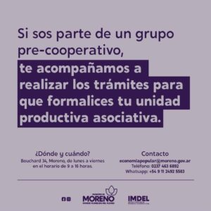 Para la consolidación de grupos pre-cooperativistas La Municipalidad de Moreno, por intermedio del Instituto de [...]