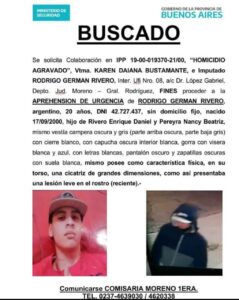 Brutal femicidio en Moreno: Insertaron la búsqueda nacional del acusado Rodrigo Rivero