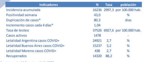 Coronavirus en Moreno: Se registraron 16 fallecidos más y ya son 438 los muertos por la enfermedad en el distrito