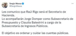 Con eje en el orden de las cuentas públicas, Massa designó a Raúl Rigo como Secretario de Hacienda