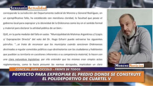 Proyecto para expropiar el predio donde se construye el polideportivo de Cuartel V