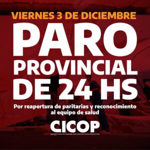 La Asociación Sindical de Profesionales de la Salud (Cicop) bonaerense realiza este viernes un paro de 24 horas con movilización hacia [...]