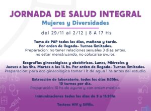 Jornadas de salud integral para mujeres y diversidades en plaza Buján