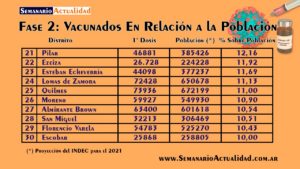 Ranking de vacunas aplicadas por habitante en distritos de Fase 2: General Rodríguez se encuentra en el puesto 14 y Moreno en el 26