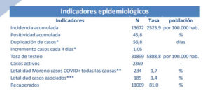 Coronavirus en Moreno: Se registraron 2 fallecidos más y ya son 234 los muertos por la enfermedad en el distrito