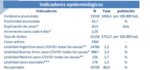 Coronavirus en Moreno: Se registraron 6 fallecidos más y los contagios ya superan los 13.000