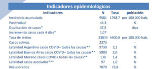 Coronavirus en Moreno: Se registró 1 fallecido más y ya son 138 los muertos por la enfermedad en el distrito
