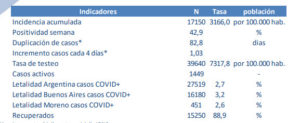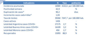 Coronavirus en Moreno: Con 1 fallecido más registrado, los contagios casi llegan a los 17 mil