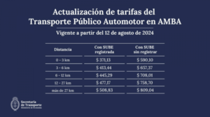 La Secretaría de Transporte de la Nación estableció el nuevo esquema tarifario para el transporte [...]