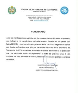 UTA advierte sobre la posibilidad de medidas de fuerza en los colectivos a partir del próximo lunes 8 de abril
