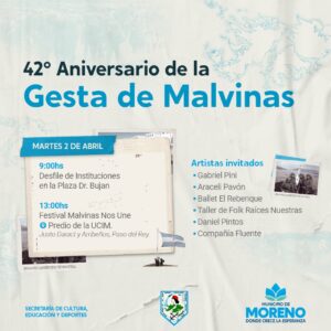 MORENO CONMEMORARÁ EL 42° ANIVERSARIO DE LA GESTA DE MALVINAS Se realizará el acto homenaje [...]