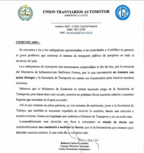 La UTA advierte sobre la posibilidad de medidas de fuerza si no hay respuesta por el aumento salarial