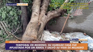 Temporal en Moreno: Su humilde vivienda fue aplastada por un árbol y salvó su vida de milagro