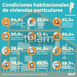 El 92% de las viviendas tienen agua por cañería y el 89% cuenta con Internet, relevó el Indec