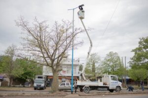 Más iluminación en La Reja: comenzó la instalación de equipo LED en la Avenida Beato Balaguer
