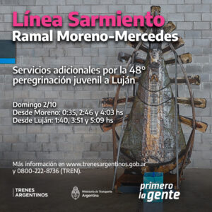 Trenes Argentinos informa que con motivo de la 48va. peregrinación juvenil a pie a la [...]