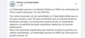 La Fraternidad anunció un paro de trenes el próximo jueves