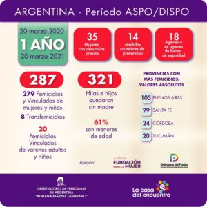 Hubo 279 femicidios de mujeres y niñas desde que comenzó el aislamiento por la pandemia