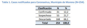 Coronavirus en Moreno: 31 casos confirmados, incluyendo tres personas fallecidas y 55 sospechosos