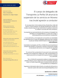 #Ahora #Urgente Comunicado oficial de Transporte La Perlita sobre el paro por tiempo indeterminado llevado [...]