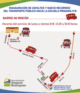 El lunes 8 de abril se inauguran asfaltos y un nuevo recorrido del Transporte Público en el barrio Mi Rincón de General Rodríguez