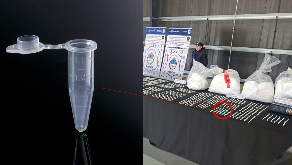 Cuando entraron en la vivienda se encontraron con una gran sorpresa. 26 kilos de cocaína de máxima pureza (en un primero momento había trascendido que eran 18 kilos) con un valor de unos 10.000 dólares por kilo. Pero además secuestraron 18.000 microtubos, utilizados en la industria farmacéutica, que era el embalaje de la droga. Tenían tres presentaciones. De 1, 3 y 5 gramos. Una marca distintiva. Destino: Clientes en la zona norte del conurbano bonaerense con alto poder adquisitivo.