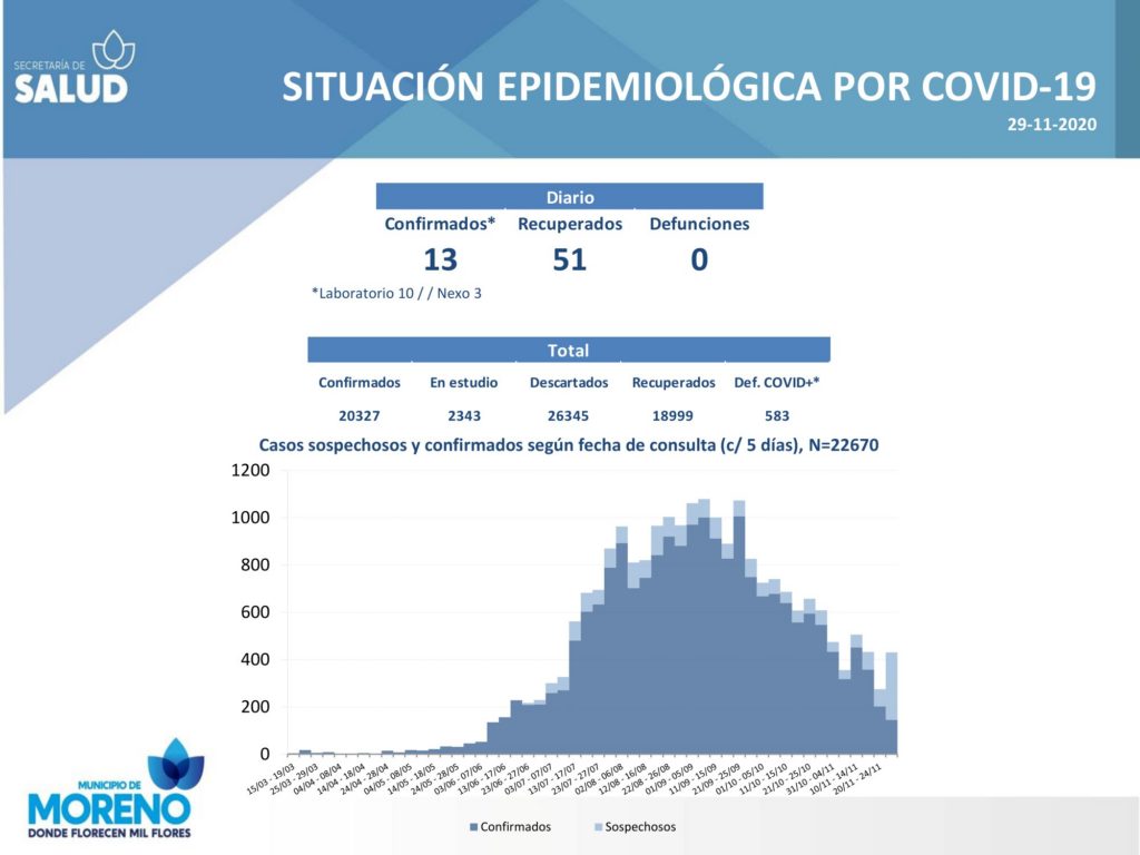 SaludCoronavirus en Moreno: Con 13 nuevos casos confirmados, los contagiados en el distrito son 20327 Posted on 29 noviembre, 20203 diciembre, 2020 by rodrigos 29 Nov Vecinos adjudicatarios de lotes en Cascallares 2 reclaman urgentes obras de infraestructura Informe sobre coronavirus en la región: Reporte hasta la mañana del 29 de noviembre