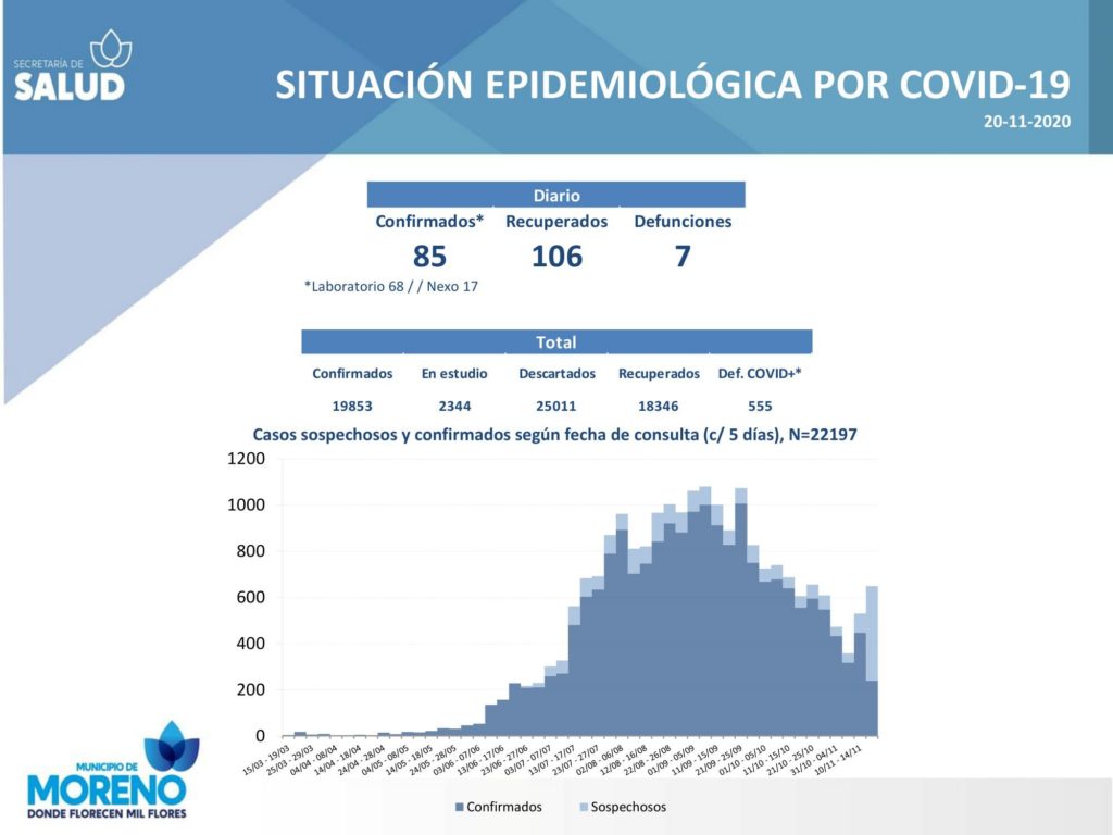 En el día de la fecha se registraron 85 nuevos casos de coronavirus en el distrito, 106 recuperados y 7 fallecidos