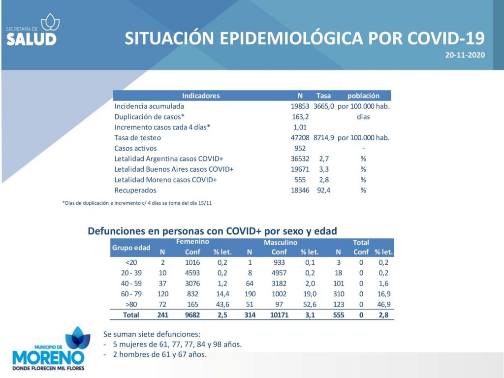 Coronavirus en Moreno: Se registraron 7 fallecidos más y ya son 555 los muertos por la enfermedad en el distrito