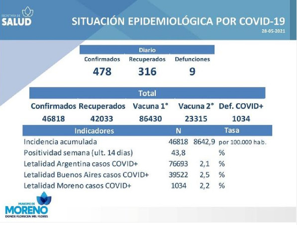 Coronavirus en Moreno: Se registraron nueve fallecimientos por la segunda ola, que sigue impactando fuerte