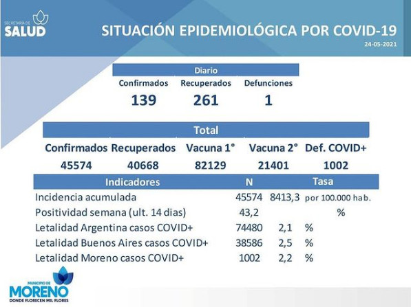 Sin categoríaCoronavirus en Moreno: Se registró 1 fallecido más y ya son 1002 los muertos por la enfermedad en el distrito Posted on 24 mayo, 202126 mayo, 2021 by rodrigos 24 May A raíz de una violación del confinamiento, vecinos de Cortejarena denuncian represión policial El ex intendente y su mirada sobre la situación sociopolítica y su trabajo con De La Torre