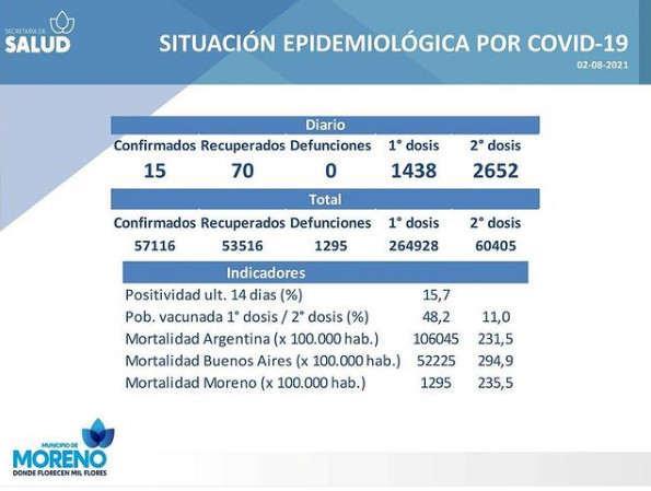SaludCoronavirus en Moreno: Se reportaron 15 casos positivos más que en el día de ayer Posted on 2 agosto, 20213 agosto, 2021 by rodrigos 02 Ago A tres años de las muertes de Sandra y Rubén, acto homenaje en la puerta de la Escuela 49 A tres años de las muertes de Sandra y Rubén: Frente a la Fiscalía en reclamaron justicia