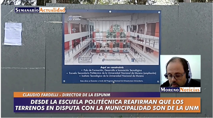 En medio de la disputa por los predios ubicados en la esquina de Corvalán y Merlo, el director de la Escuela Secundaria Politécnica Claudio Fardelli fue contundente: Los terrenos son de la Universidad Nacional de Moreno