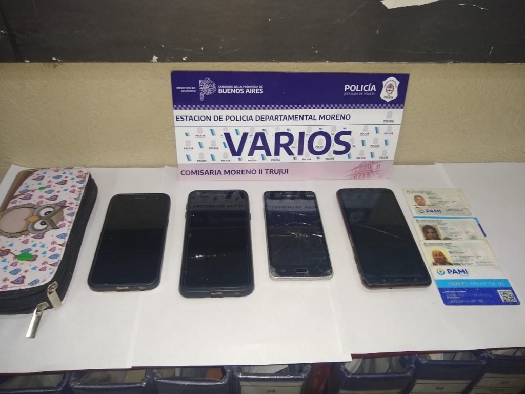 Al momento de ser aprehendidos, los delincuentes tenían en su poder cuatro teléfonos celulares, documentación personal, una billetera de dama y dinero en efectivo, señalaron las fuentes.