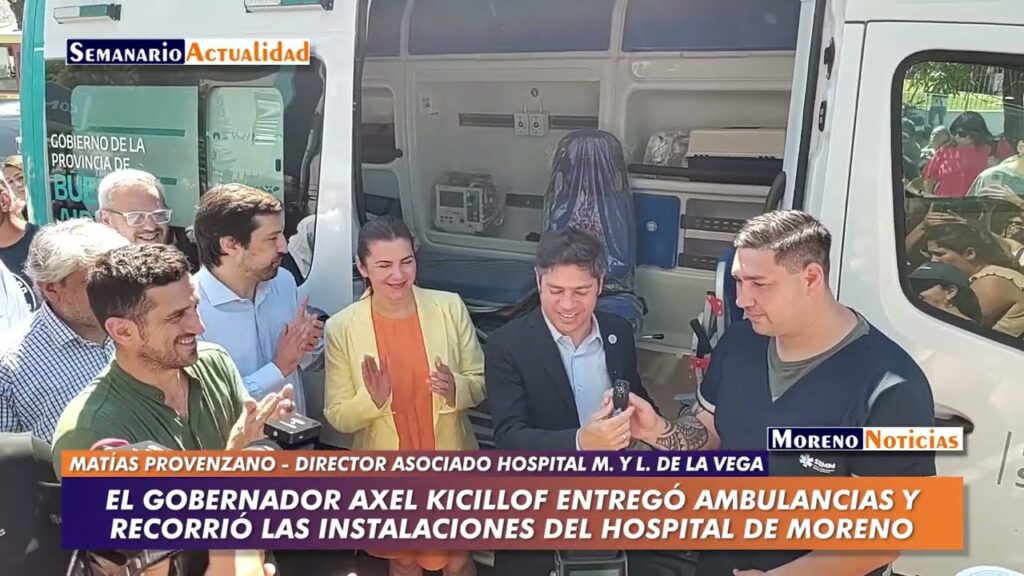 El gobernador de la provincia de Buenos Aires, Axel Kicillof, recorrió este viernes las obras de ampliación en el Hospital Zonal General de Agudos “Mariano y Luciano de la Vega” en el municipio de Moreno, donde además entregó tres ambulancias de alta complejidad, con las cuales completó las 425 unidades entregadas desde el inicio de la gestión. Fue junto al ministro de Salud, Nicolás Kreplak; la intendenta local, Mariel Fernández; y el director asociado del hospital, Matías Provenzano.La ampliación contempla cuatro nuevos consultorios externos destinados a las unidades de urología y cuidados paliativos, y obras en las áreas de quirófano y en el próximo servicio de hemodinamia.