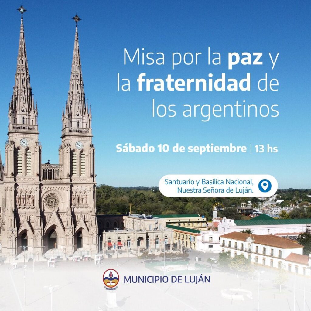 La misa convocada por el municipio de Luján responde a la convocatoria de la Conferencia Episcopal Argentina para que el próximo fin de semana -sábado 10 y domingo 11- se rece en todo el país por «la paz y la fraternidad de todos los argentinos y argentinas».