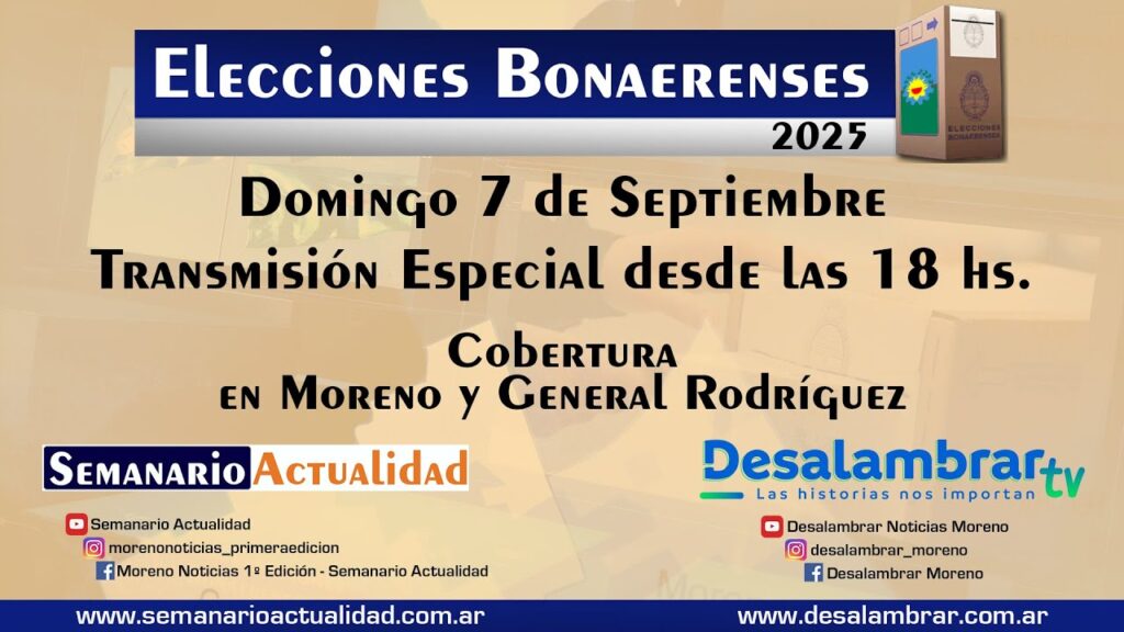 PolíticaElecciones 2025: Cobertura especial Posted on 8 septiembre, 20258 septiembre, 2025 by rodrigos 08 Sep Cobertura especial de Semanario Actualidad y DesalambrarTV para las elecciones bonaerenses del 7 de septiembre El DFI detuvo a un hombre acusado de comercializar material de abuso sexual infantil SITRAM elige nuevas autoridades: El gremio sería conducido por una mujer