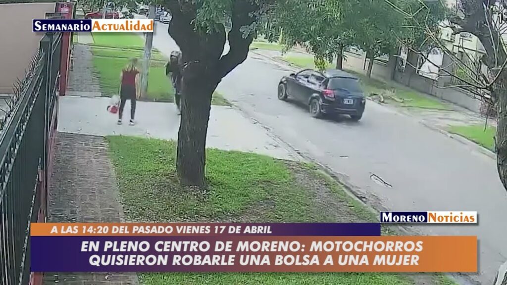 El suceso se produjo a las 14:20 del pasado viernes 17 de abril sobre la calle Vicente López y Planes entre Pagano y Chiclana del centro de Moreno lado norte. Dos motochorros intentaron sacarle una bolsa a una mujer que caminaba tranquilamente por la vereda. Ante la resistencia, y la aparición de un automovilista solidario, los delincuentes se dieron a la fuga.
