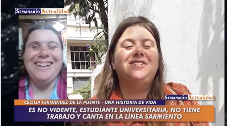 Es no vidente, estudiante universitaria, no tiene trabajo y canta en la línea Sarmiento