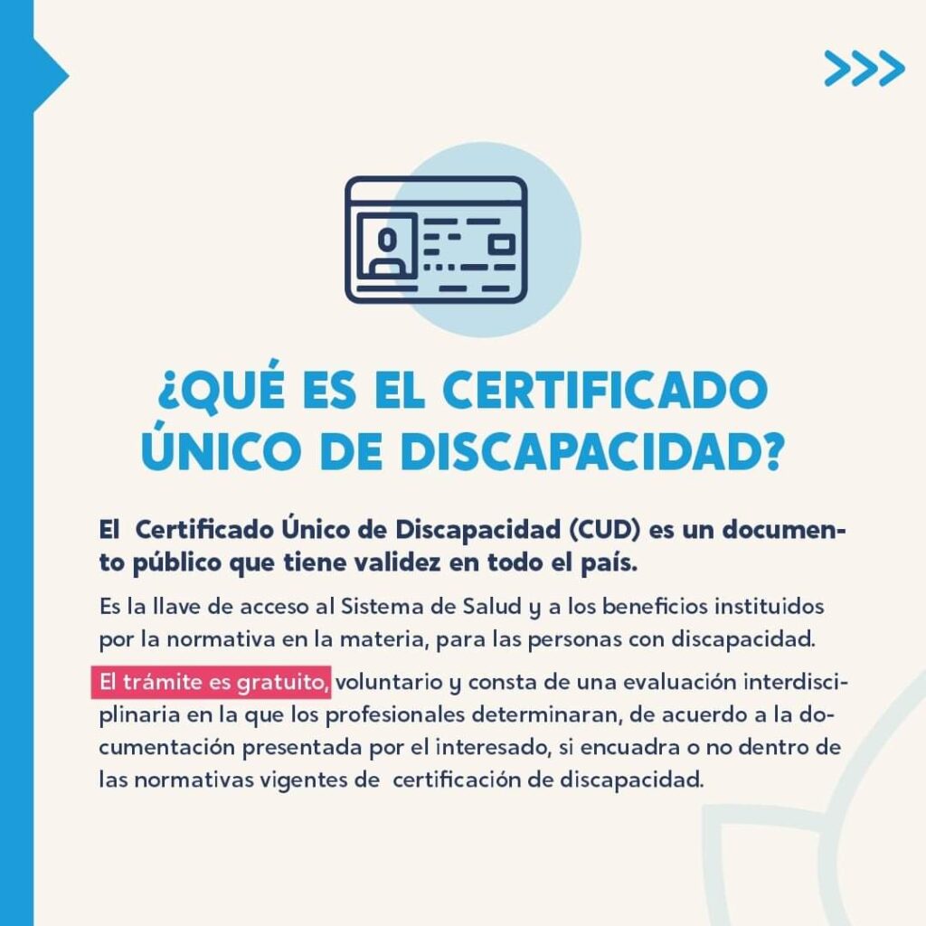 El Certificado Único de Discapacidad (CUD) es de suma importancia ya que permite acceder a una cobertura integral de prestaciones de rehabilitación, medicación y ortesis que la persona necesite debido a su patología; así como al pase de transporte, la Asignación por hijo por discapacidad, escuelas especiales y el símbolo internacional de acceso. Además, facilita la realización de diferentes gestiones.