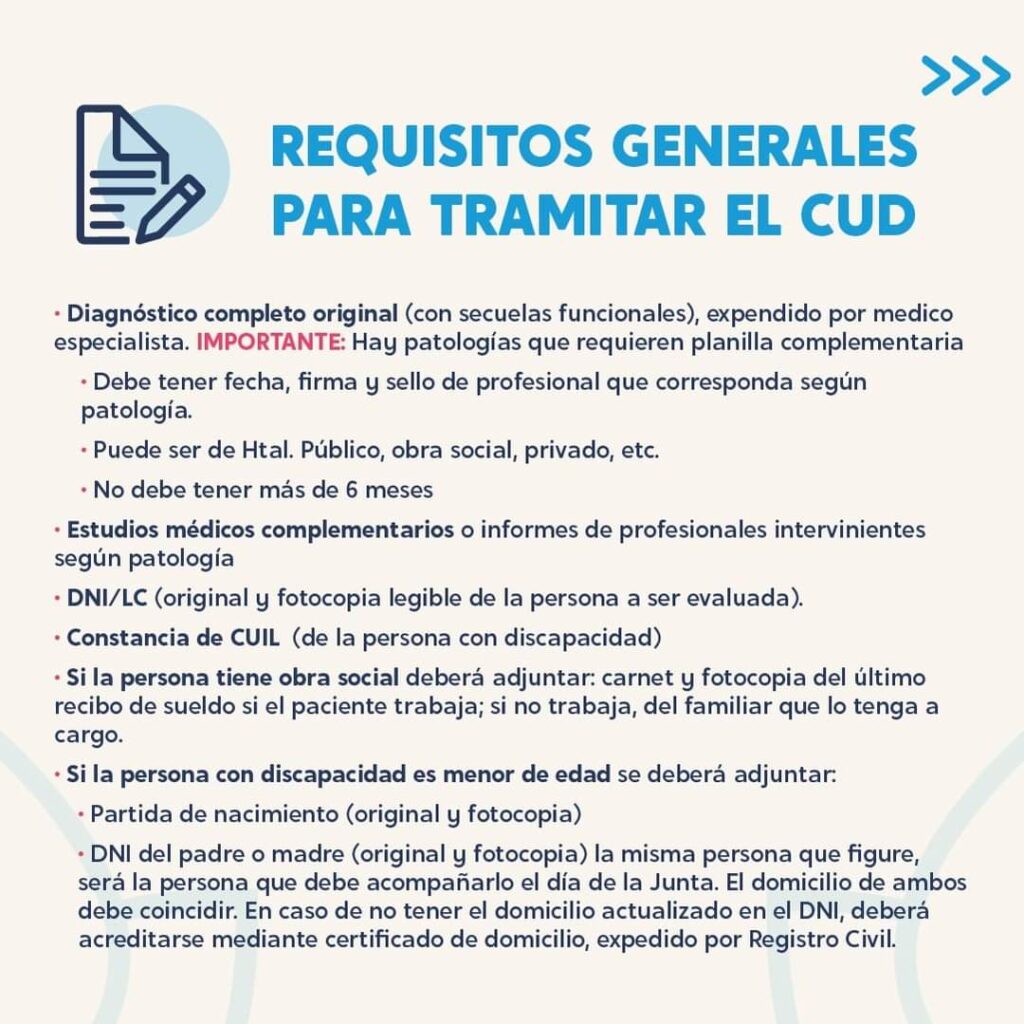Las documentaciones necesarias para tramitar el CUD que deben presentarse son: