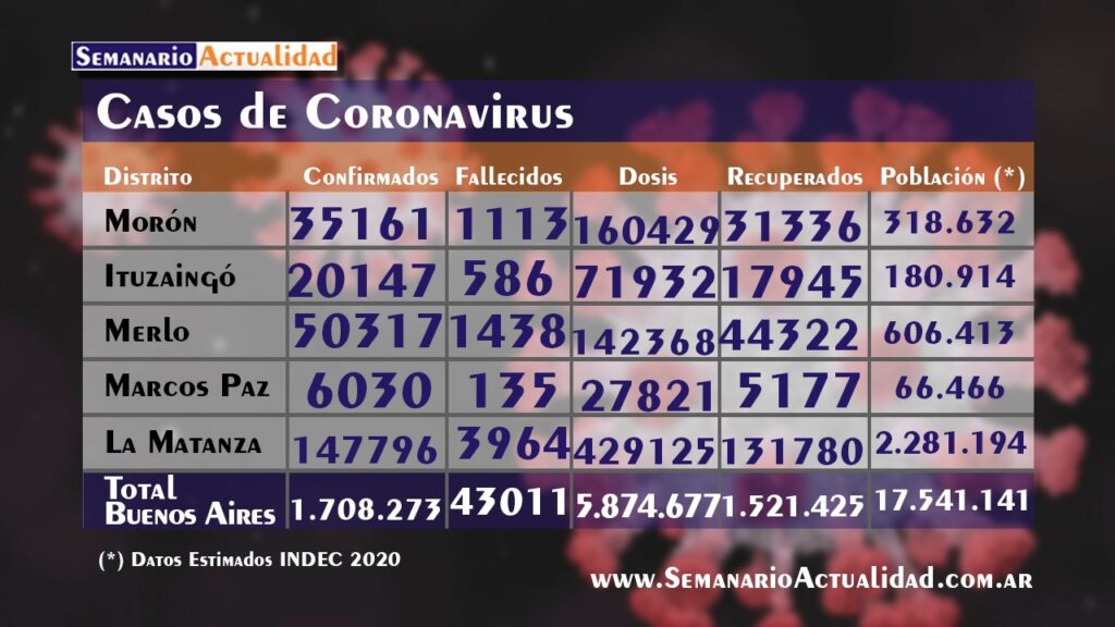 Aclaración: NO todos los municipios actualizan diariamente ni tampoco a la misma hora. Los valores registrados son los últimos oficiales hasta el día de la fecha y hora en que son publicadas las placas